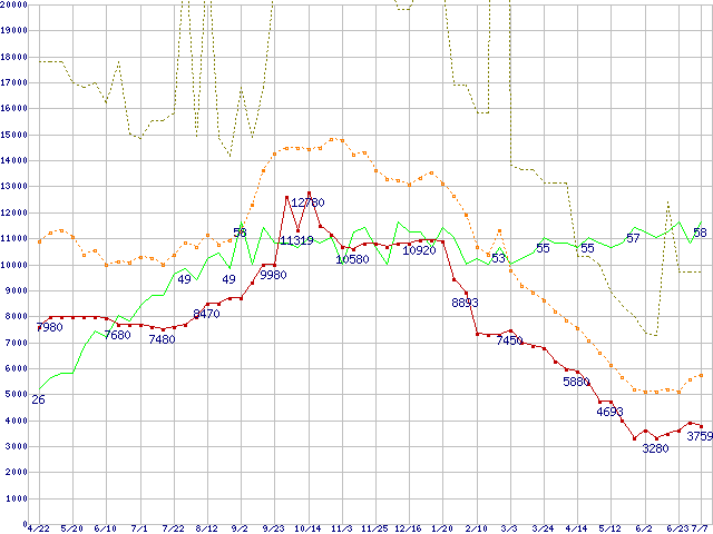 PC2-5300(DDR2-667) DDR2 SDRAM DIMMの最安値推移