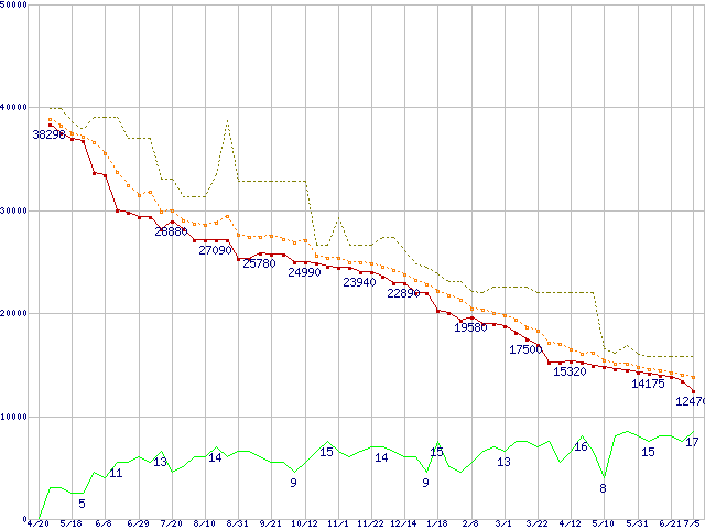 | ST3500630AS (500GB,16MB)の価格推移 | | | (2006年4月20日~2007年7月5日) |