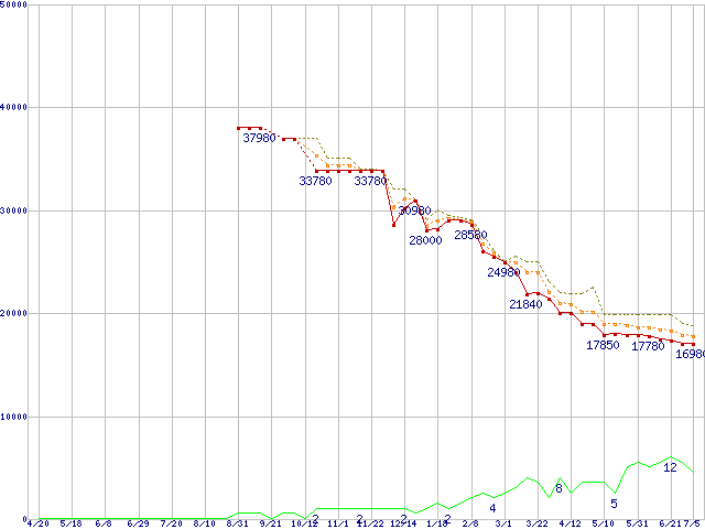 | ST3500630NS (500GB,16MB)の価格推移 | | | (2006年4月20日~2007年7月5日) |