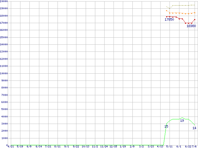| Core 2 Duo E4400 (2GHz,L2 2MB)の価格推移 | | | (2006年4月21日~2007年7月6日) |