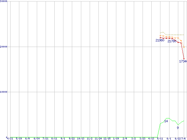 | Athlon 64 X2 5200+ (2.6GHz,L2 1MB×2,TDP65W)の価格推移 | | | (2006年4月21日~2007年7月6日) |