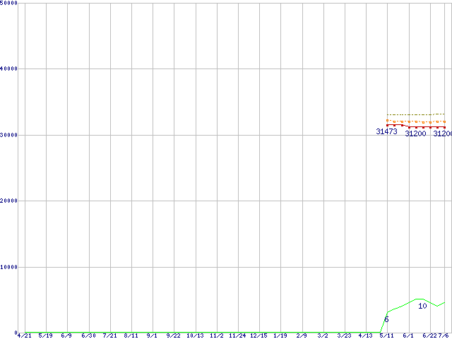 | Core 2 Duo T7300 (2.0GHz,L2 4MB)の価格推移 | | | (2006年4月21日~2007年7月6日) |
