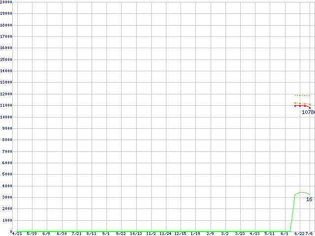 | Athlon X2 BE-2300 (1.9GHz,L2 512KB×2,TDP 45W)の価格推移 | | | (2006年4月21日~2007年7月6日) |
