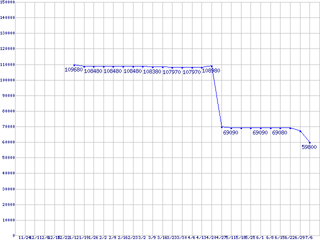 | LGA775 (FSB 1066MHz,Quad Core,EM64T対応,TDP 105W)の最安値推移 | | | (2006年11月24日~2007年7月6日) |