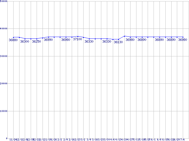 | Core Duo向けSocket 478 (FSB 667MHz,Dual Core,EM64T対応)の最安値推移 | | | (2006年11月24日~2007年7月6日) |