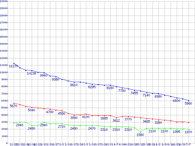 PC2-6400(DDR2-800) DDR2 SDRAM DIMMの最安値推移