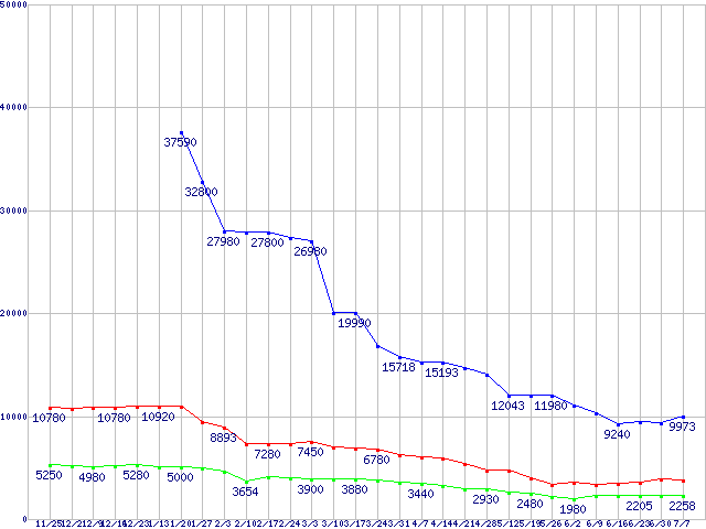 PC2-6400(DDR2-800) DDR2 SDRAM DIMMの最安値推移