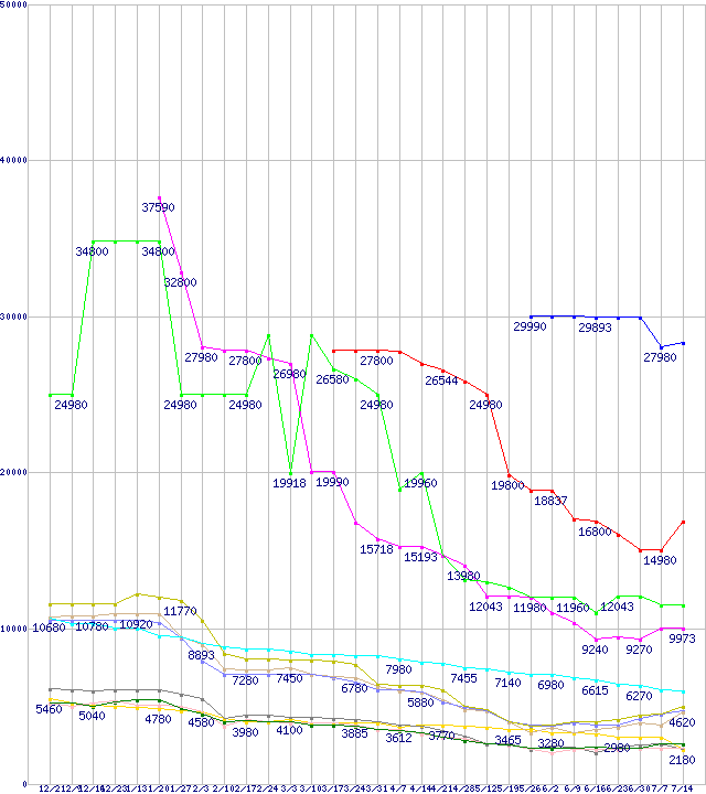メモリ主要製品の最安値推移