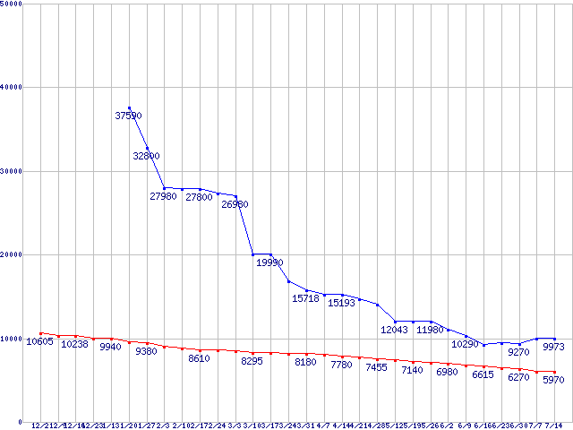 メモリ主要製品(最安値5千円~1万円未満)の最安値推移