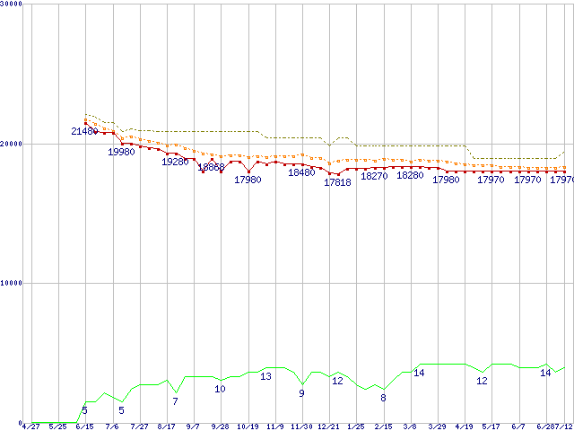 | WD740ADFD (74.3GB)の価格推移 | | | (2006年4月27日~2007年7月12日) |