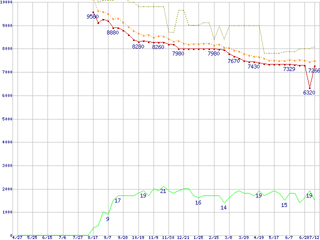 | HDT725025VLAT80 (250GB,8MB)の価格推移 | | | (2006年4月27日~2007年7月12日) |