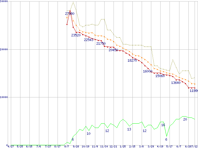 | HDT725050VLA360 (500GB,16MB)の価格推移 | | | (2006年4月27日~2007年7月12日) |