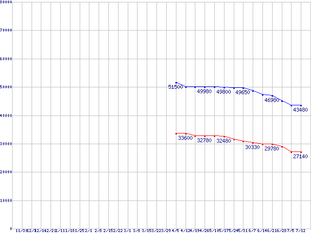 Deskstar T7K500 (7200rpm,SATA 3Gb/s)の最安値推移