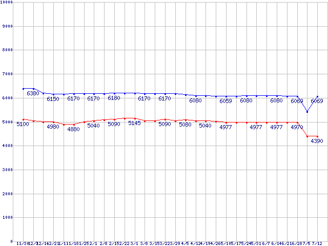 Deskstar 7K160 (7200rpm,SATA 3Gb/s)の最安値推移