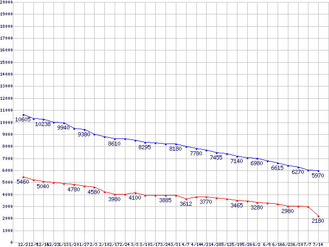 PC2-6400(DDR2-800) DDR2 SDRAM DIMMの最安値推移