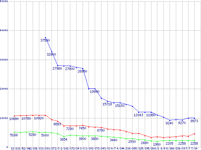 PC2-6400(DDR2-800) DDR2 SDRAM DIMMの最安値推移