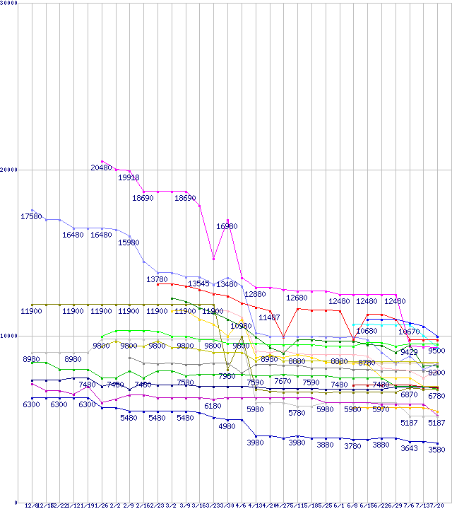 ※製品名をクリックすると個別のグラフを表示します ※点線部は販売店が確認できなかった、または調査データがないことを示します |