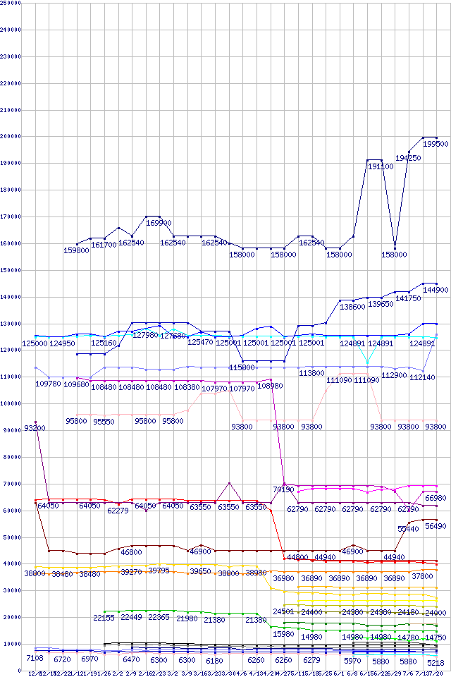 | Intel系CPUの最安値推移 | | | (2006年12月8日~2007年7月20日) |