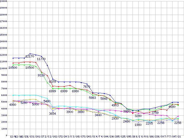 メモリ主要製品(最安値5千円~1万円未満)の最安値推移