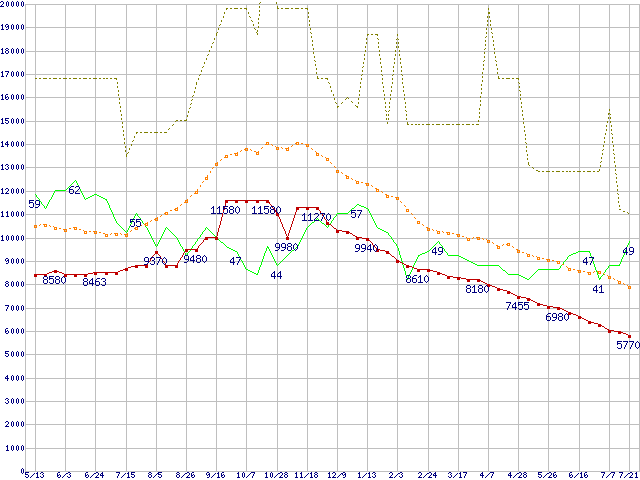 メモリ主要製品(最安値5千円~1万円未満)の最安値推移