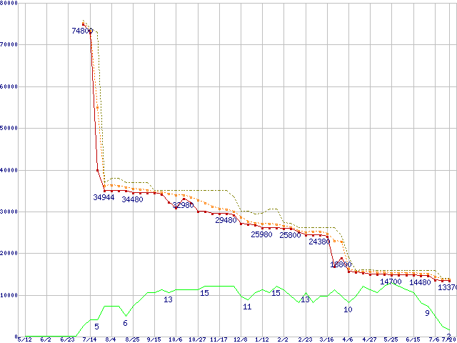 | Athlon 64 X2 4600+ (2.4GHz,L2 512KB×2,TDP65W)の価格推移 | | | (2006年5月12日~2007年7月20日) |