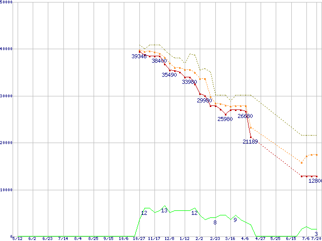 | Athlon 64 X2 5000+ (2.6GHz,L2 512KB×2)の価格推移 | | | (2006年5月12日~2007年7月20日) |