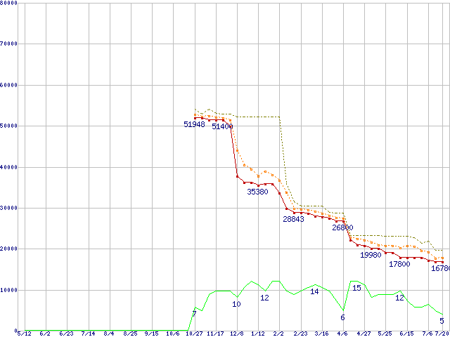 | Athlon 64 X2 5200+ (2.6GHz,L2 1MB×2)の価格推移 | | | (2006年5月12日~2007年7月20日) |