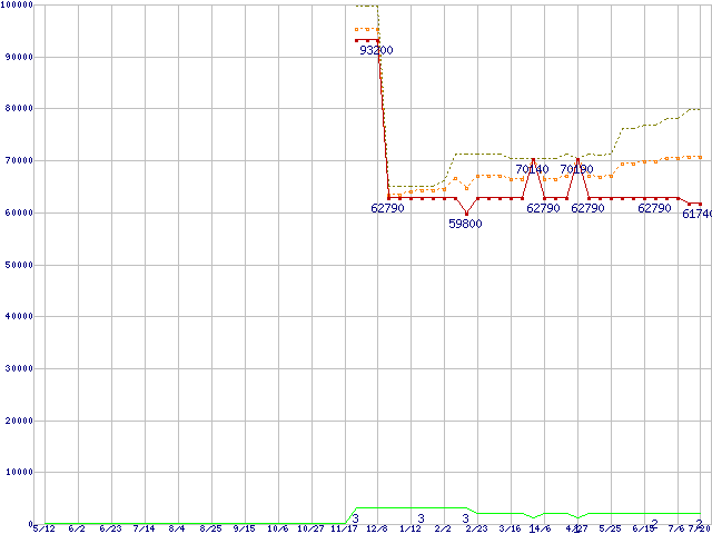 | Xeon E5320(1.86GHz)の価格推移 | | | (2006年5月12日~2007年7月20日) |