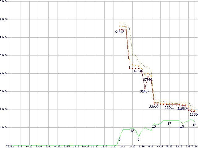 | Athlon 64 X2 5600+ (2.8GHz,L2 1MB×2)の価格推移 | | | (2006年5月12日~2007年7月20日) |