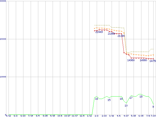 | Core 2 Duo E4300 (1.80GHz,L2 2MB)の価格推移 | | | (2006年5月12日~2007年7月20日) |