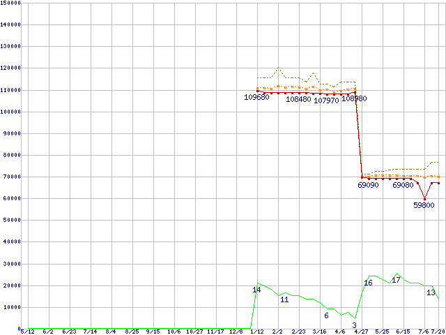 | Core 2 Quad Q6600 (2.40GHz,L2 4MB×2)の価格推移 | | | (2006年5月12日~2007年7月20日) |
