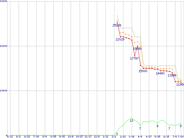 | Athlon 64 X2 4400+ (2.3GHz,L2 512KB×2,TDP65W)の価格推移 | | | (2006年5月12日~2007年7月20日) |
