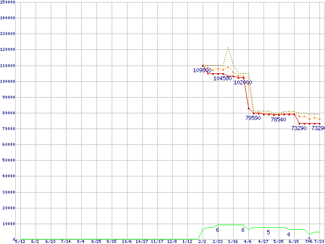 | Athlon 64 FX-72 (2.8GHz) ※2個セットの価格の価格推移 | | | (2006年5月12日~2007年7月20日) |