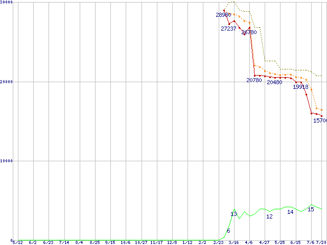 | Athlon 64 X2 5000+ (2.6GHz,L2 512KB×2,TDP65W)の価格推移 | | | (2006年5月12日~2007年7月20日) |