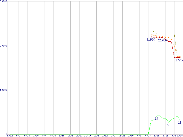 | Athlon 64 X2 5200+ (2.6GHz,L2 1MB×2,TDP65W)の価格推移 | | | (2006年5月12日~2007年7月20日) |