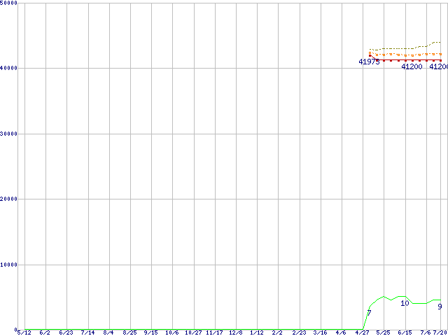 | Core 2 Duo T7500 (2.2GHz,L2 4MB)の価格推移 | | | (2006年5月12日~2007年7月20日) |