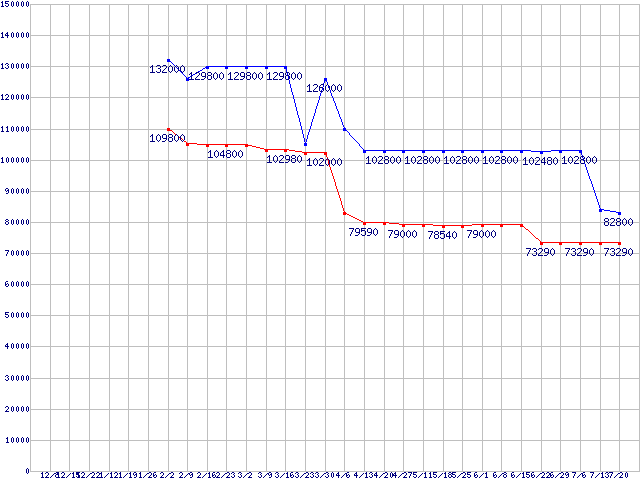 Socket AM2 (FSB 1000MHz,Dual Core)の最安値推移