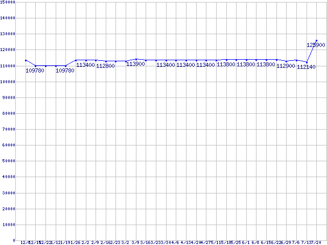 | LGA771(FSB 1333MHz,Dual Core,L2 4MB)の最安値推移 | | | (2006年12月8日~2007年7月20日) |