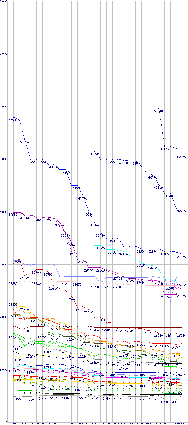 ※製品名をクリックすると個別のグラフを表示します ※点線部は販売店が確認できなかった、または調査データがないことを示します |