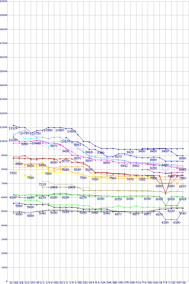 | HDD主要製品(最安値1万円未満)の最安値推移 | | | (2006年12月14日~2007年7月26日) |