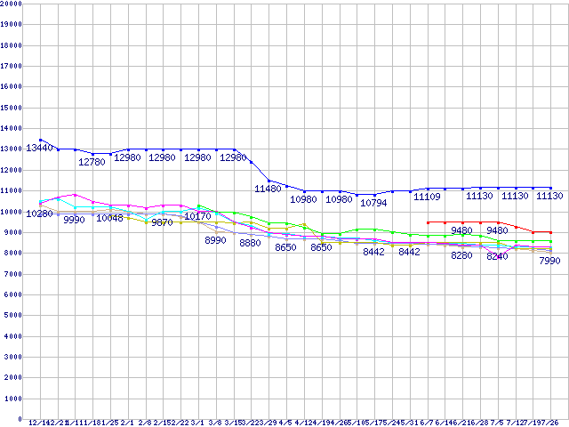 HDD 400~500GB未満の最安値推移