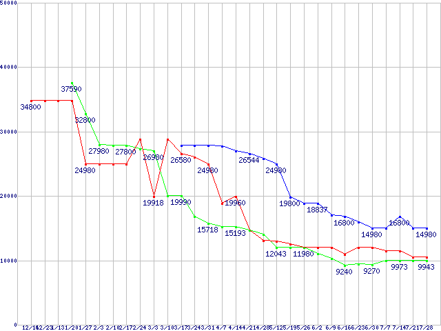 メモリ主要製品の最安値推移