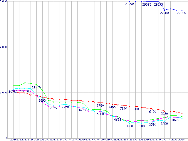 512MBモジュールの最安値推移
