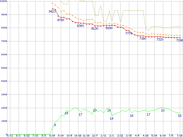 | HDT725025VLA380 (250GB,8MB)の価格推移 | | | (2006年5月11日~2007年7月26日) |
