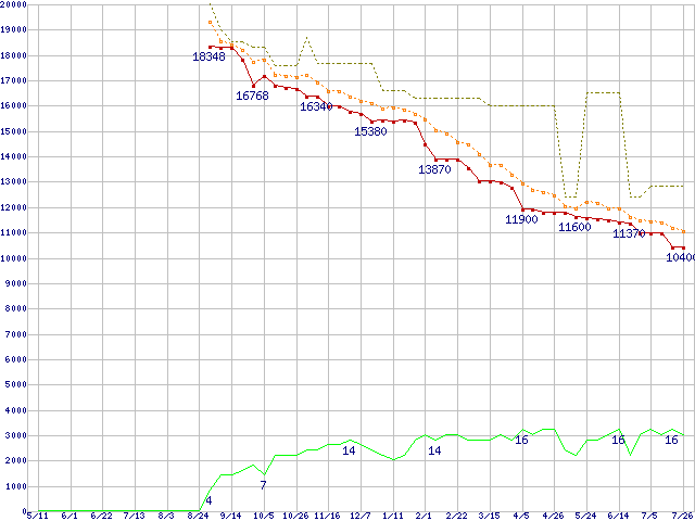 | HDT725040VLAT80 (400GB,8MB)の価格推移 | | | (2006年5月11日~2007年7月26日) |