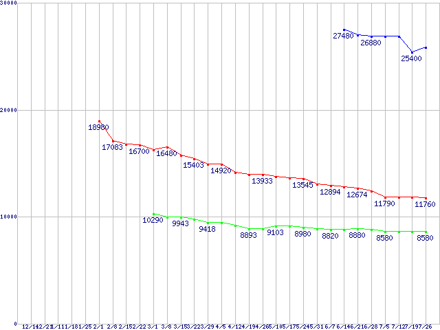 WD Raptor (10000rpm,SATA 1.5Gb/s,16MB,NCQ)の最安値推移