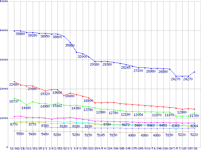WD Raptor X (10000rpm,SATA 1.5Gb/s,16MB,NCQ)の最安値推移