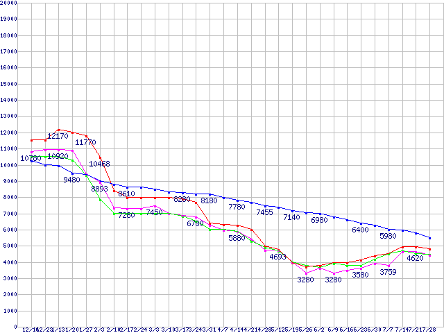 主要1GBモジュールの最安値推移