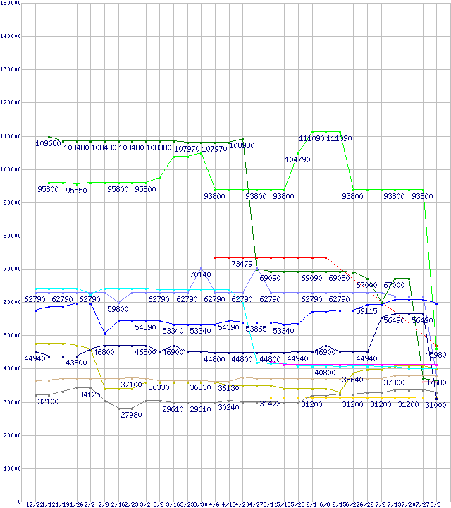 CPU主要製品(最安値6万円以上)の最安値推移