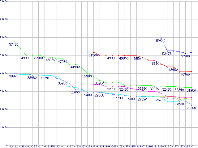 HDD主要製品(最安値1万円未満)の最安値推移